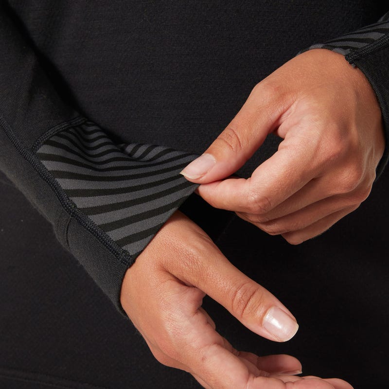 A true female fit. In weaving our award-winning Lifa® fibers with merino wool we get the best of both worlds; moisture management and added warmth. Lifa® helps to transport moisture away from your body, keeping you dry during strenuous activity, while the soft merino wool ensures you stay warm in the coldest conditions.